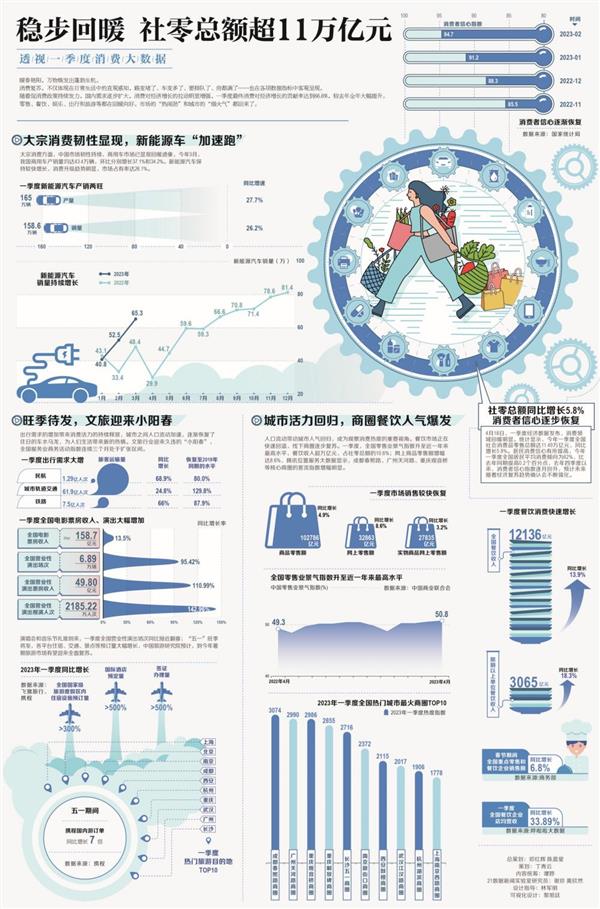 转载请标注:信息网——透视一季度消费大数据:稳步回暖 社零总额超11万亿元