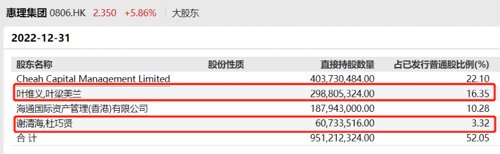 惠理集团表示,其获联席主席兼联席首席投资总监谢清海告知,创始股东谢清海及叶维义正就潜在买方集团一间成员公司可能自创始股东购买少于30%的该公司已发行股份与潜在买方集团磋商,惟倘其将导致潜在买方集团产生任何责任须根据香港收购及合并守则规则第26.1条作出强制性收购要约,则该交易不会进行。惠理集团亦获告知,磋商正在进行中,各方尚未就相关买卖订立任何最终合约。虽然声称合约暂未签订,但惠理集团公告与媒体报道信息存在多方一致,同样招来大量资金涌入。首家港股主板上市资产管理公司官网信息显示,惠理基金成立于1993年,系亚洲最大的独立资产管理公司之一,致力为环球的机构及个人客户提供世界级的投资服务和产品。投资策略覆盖股票、固定收益、另类投资、多元资产及量化投资,服务亚太区、欧洲以至北美等地的个人及机构投资者。惠理集团总部位于香港,在上海、深圳、北京、吉隆坡、新加坡及伦敦均设有办事处;于2007年于香港联合交易所上巿,成为第一家于主板上市的资产管理公司。股权结构上,Wind信息显示,截至2022年年底,叶维义夫妇、谢清海夫妇分别持有惠理集团16.35%、3.32%股权。