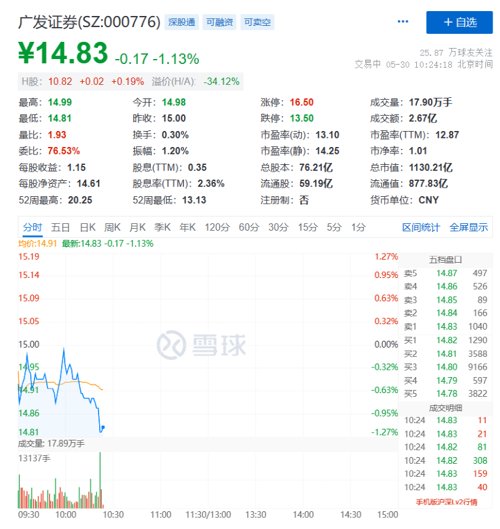 目前,广发控股香港主要全资拥有广发经纪(香港)、广发融资(香港)、广发资管(香港)、广发全球资本、广发投资(香港)、广发灯塔资本管理有限公司、广发信息咨询服务(深圳)有限公司、广发投资管理(香港)有限公司、广发财富管理(香港)有限公司、广发加拿大控股有限公司和广发证券(加拿大)有限公司。另外,广发基金旗下拥有广发国际资产管理有限公司,广发期货下设广发期货(香港);广发期货(香港)下设广发金融交易(英国),海外展业范围较广。截至发稿,广发证券股价走低,当前总市值1130亿元.