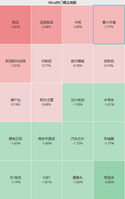 盘面上,上午海运板块高开高走,医药生物回暖,中药、新冠肺炎检测、仿制药、创新药等多个细分赛道走高;消费股普遍不振,餐饮旅游、免税店等概念股下行。
