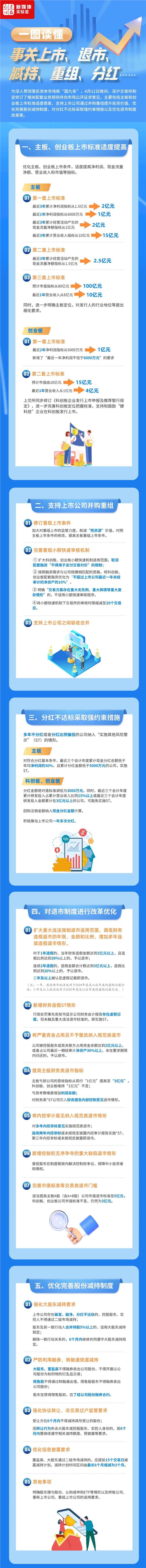 一图看懂上市、退市、减持、重组、分红新规 主板和创业板上市标准提高