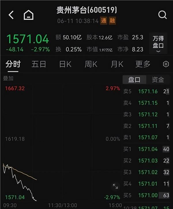 最让投资者关注的还是白酒股开盘集体重挫,贵州茅台继上周五盘中跳水后,持续走低。