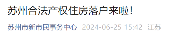 6月25日,据“苏州市新市民事务中心”公众号消息,苏州公安局发布了《关于实施合法产权住房落户有关事项的通知》,进一步深化户籍制度改革,吸引更多流动人口在苏州落户安居、就业创业。通知自2024年8月1日起施行,有效期至2027年7月31日。