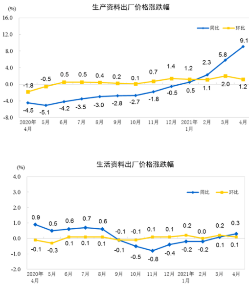 中国4月CPI同比涨0.9%,PPI涨幅扩大至6.8%,大宗商品涨价影响明显