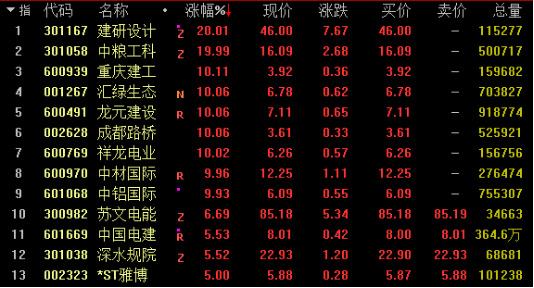 网络整理 2025-11-16今日基建板块大幅走高,截止发稿,建研设计、重庆建工、龙元建设、成都路桥、中材国际、中铝国际涨停;中国电建、深水规院等个股涨幅超5%。