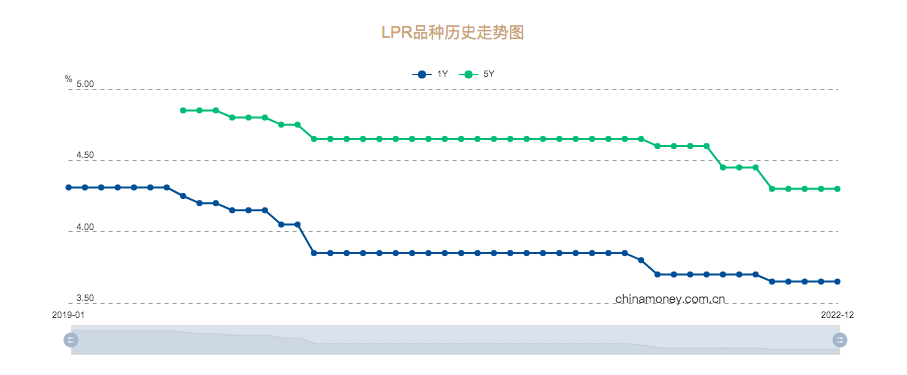 12月20日,中国人民银行授权全国银行间同业拆借中心公布,2022年12月20日贷款市场报价利率(LPR)为:1年期LPR为3.65%,5年期以上LPR为4.3%。均较上月维持不变。