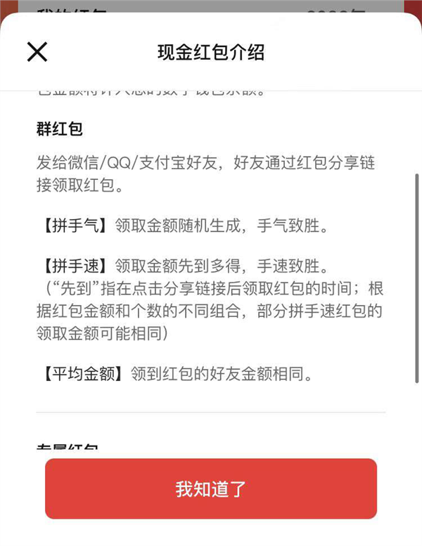 现金红包则分为“现金红包”、“群红包”和“专属红包”三类。
