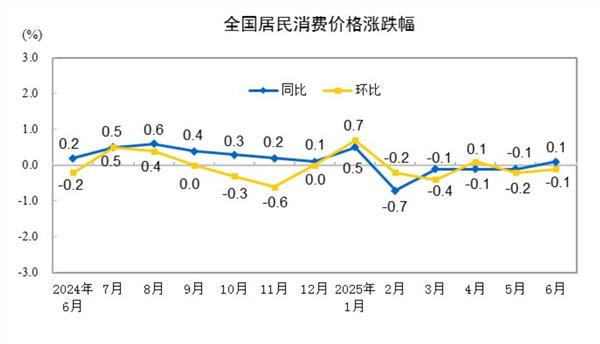 网络整理 2025-11-17(原标题:2025年6月份居民消费价格同比上涨0.1%)