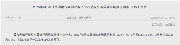 网络整理 2025-09-016月20日,人民银行授权全国银行间同业拆借中心公布了新一期贷款市场报价利率(LPR)。其中,1年期LPR为3.55%,上月为3.65%;5年期以上LPR为4.2%,上月为4.3%。1年期LPR、5年期以上LPR均较上月下降10个基点。