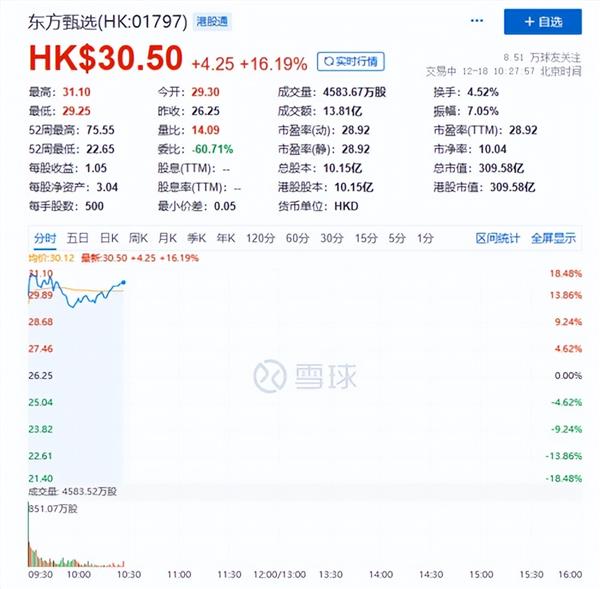 东方甄选暴涨超18%