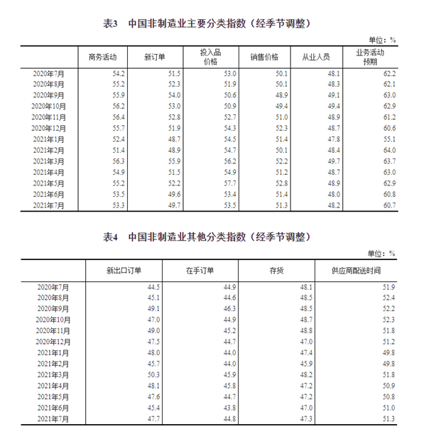 2021年7月中国采购经理指数运行情况